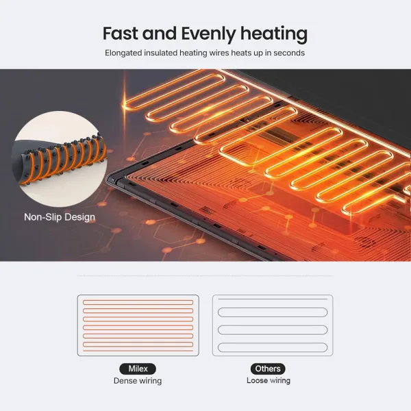 - Easy to Use and Store: Simply press the on/off button to activate the warming function and adjust the temperature, or press the button for child lock protection. When not in use, roll it up and store it easily in a drawer or cabinet.